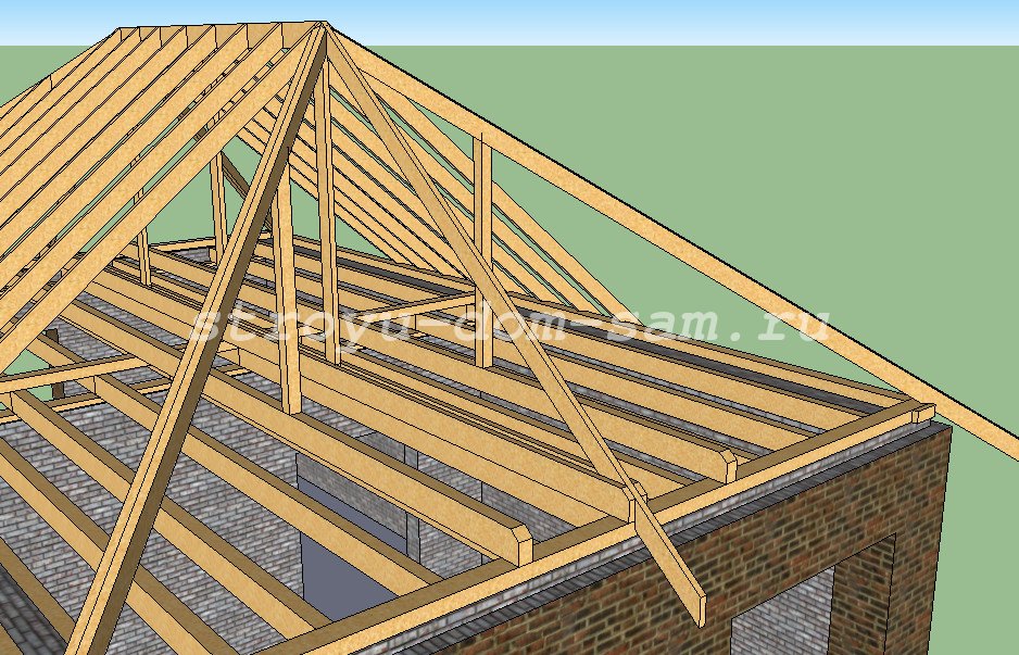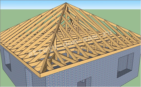 - toit en croupe - toit à quatre pentes, reliant au centre (deux triangles perpendiculaires, se différenciant par la complexité de l'imperméabilisation et de la conception des fenêtres);