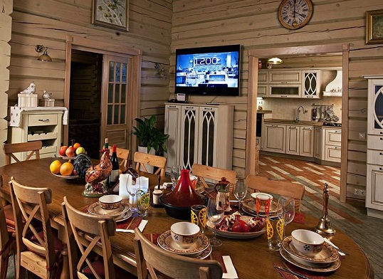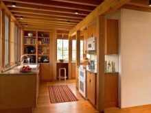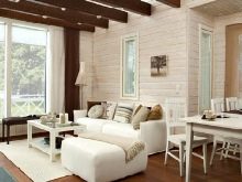 Les experts soulignent que, dans les maisons de petite surface, il est nécessaire de privilégier les couleurs claires, ce qui peut augmenter visuellement l’espace.Pour ajouter de la liberté à l'intérieur de la maison, n'utilisez pas la porte entre le salon et la cuisine, laissez-la être une arche nette, créant différentes zones qui ressemblent à un tout. Des rideaux lumineux sont utilisés sur les fenêtres et parfois, le tulle suffit.