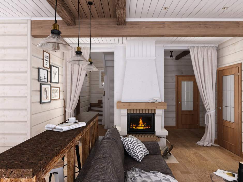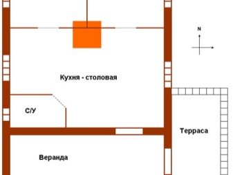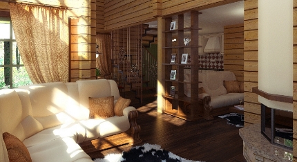 La plus grande partie de la maison sera occupée par le salon, où la famille se rassemblera et se reposera, et où les invités seront reçus. Vous pouvez combiner cette pièce avec une cuisine pour créer encore plus de liberté. Assurez-vous de mettre en évidence la chambreet si nous parlons d'une maison à deux étages, cela peut être plus élevé.