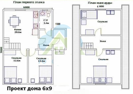 En règle générale, une surface de 6 x 9 m est considérée comme compacte, de sorte que de nombreuses personnes choisissent souvent l'option de conception pour une maison avec grenier. Ainsi, il peut s’avérer être une structure merveilleuse sur deux étages, où non seulement la famille sera située, mais également les invités.