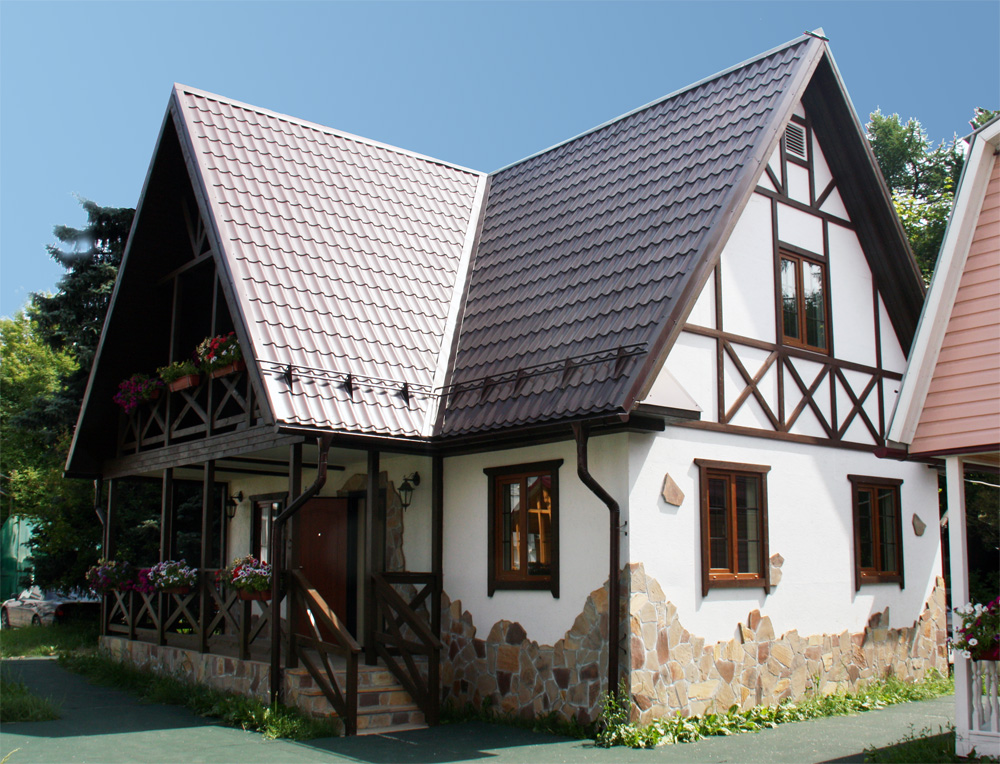 Le style est simple mais en même temps raffiné. Un tel objet s'intègre parfaitement dans le paysage avec de grands arbres.