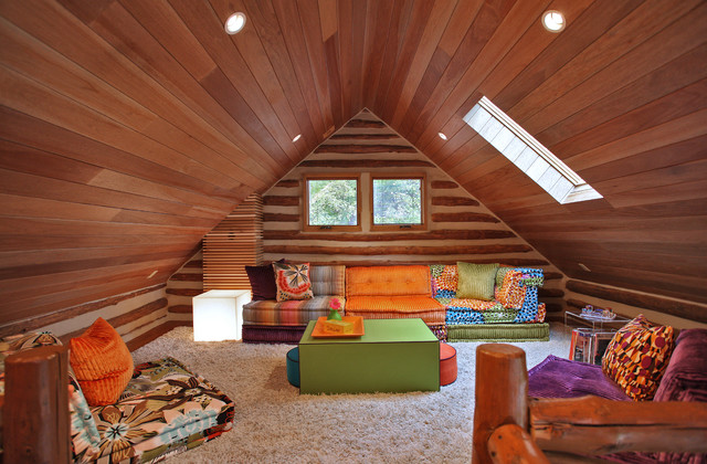 Bien sûr, il est important de bien réfléchir à l'option avec une échelle, car le design est composé de différents types et vous devez choisir ce qui aura l'air organique à l'intérieur. Le grenier ne prend pas beaucoup de place, il est beaucoup plus petit que le premier étage et vous pouvez y aménager deux pièces. Il peut s'agir d'une chambre principale ou d'un lieu de détente.