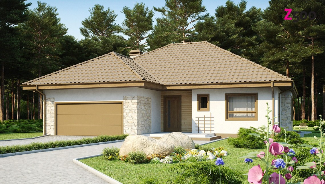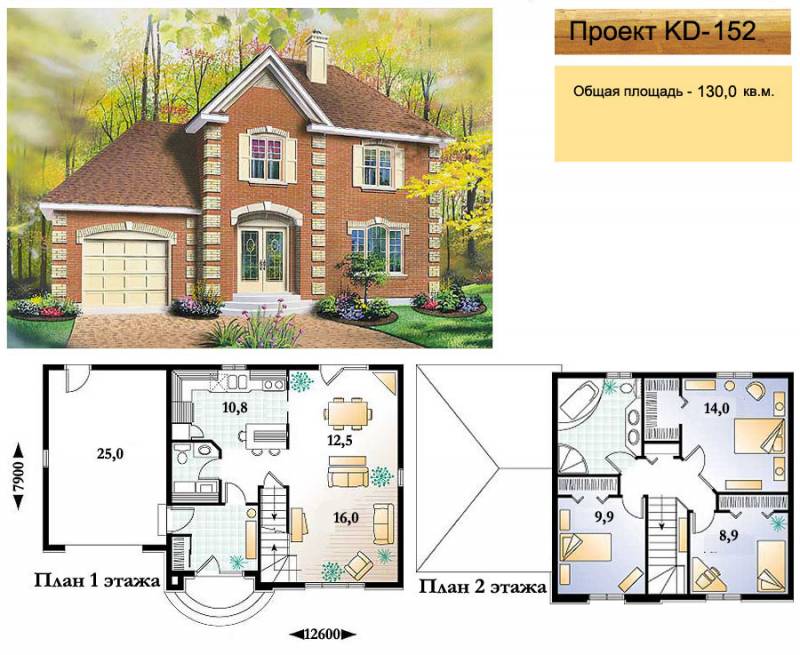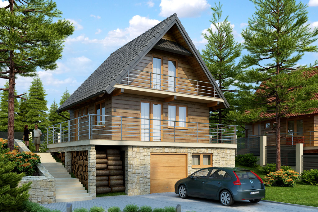 Le projet d'une maison typique avec un grenier et un garage "Hill", voir la vidéo suivante.
