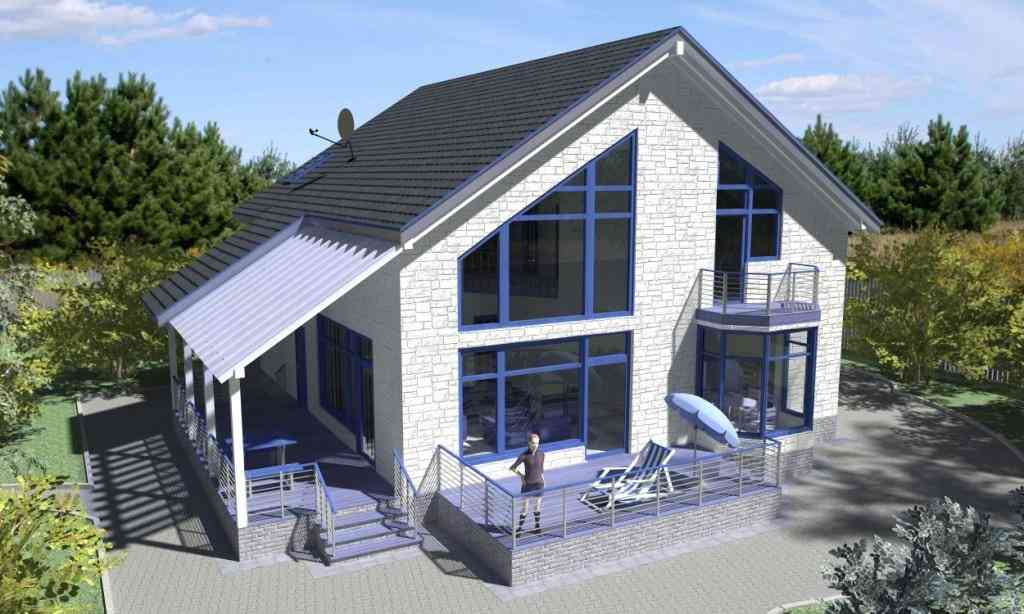 Le toit de l'architecture originale vous permet de créer une grande place mansardée, qui constitue presque un deuxième étage. Même au-dessus du garage, il y a une pièce.
