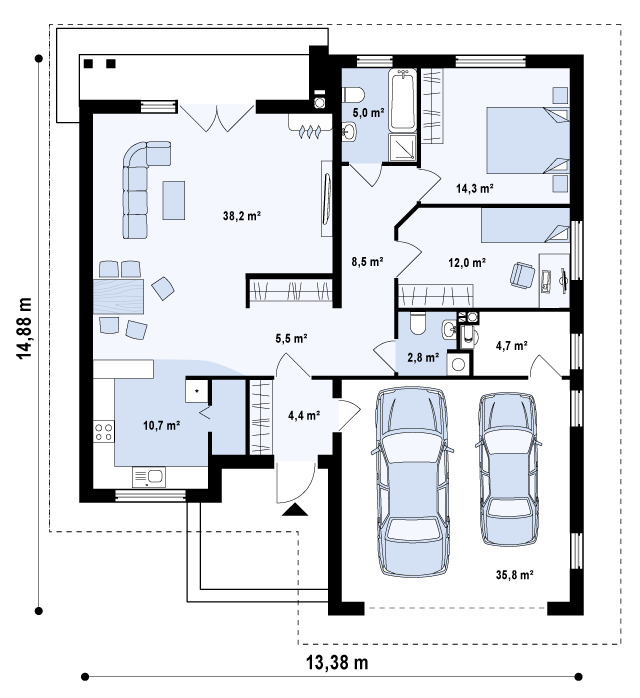 Heureux propriétaires de grandes maisons de différentes régions (8 à 10 mètres carrés, 15 à 15 mètres carrés)m et ainsi de suite) pensent souvent à la disposition d'un garage pour deux voitures. Aujourd'hui, de nombreuses familles sont confrontées au fait que l'épouse et le mari souhaitent avoir leur propre voiture. Il est donc nécessaire d'équiper un grand garage. Dans ce cas, les agences de projet élaborent spécifiquement des plans adaptés. Certaines d’entre elles sont visibles dans les images ci-dessous.