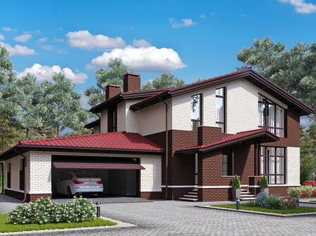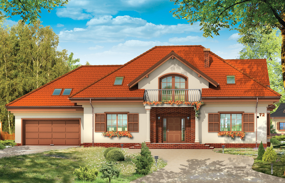 Une grande maison avec une terrasse et un garage semble encore plus confortable, du fait que vous pouvez sortir sur le balcon depuis le grenier et profiter de la magnifique vue.