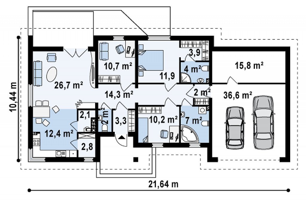 Pour attacher le garage à une petite maison jusqu’à 100 m² dont vous avez besoin judicieusement. Il est important de faire attention à la vue générale du chalet. Si la maison est étroite et allongée, il est donc logique de la poursuivre en plaçant le garage à la fin.. Si vous êtes l'heureux propriétaire d'un immeuble carré, vous avez la possibilité d'attacher le garage à votre guise.