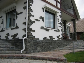 - Éléments de coin servir de façade de cadrage. La version des rectangles blancs est toujours utilisée, mais de nouvelles options apparaissent: imitation d'une pierre déchirée, conception géométriquement libre, etc.