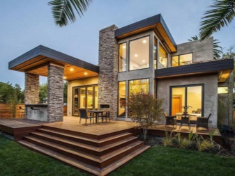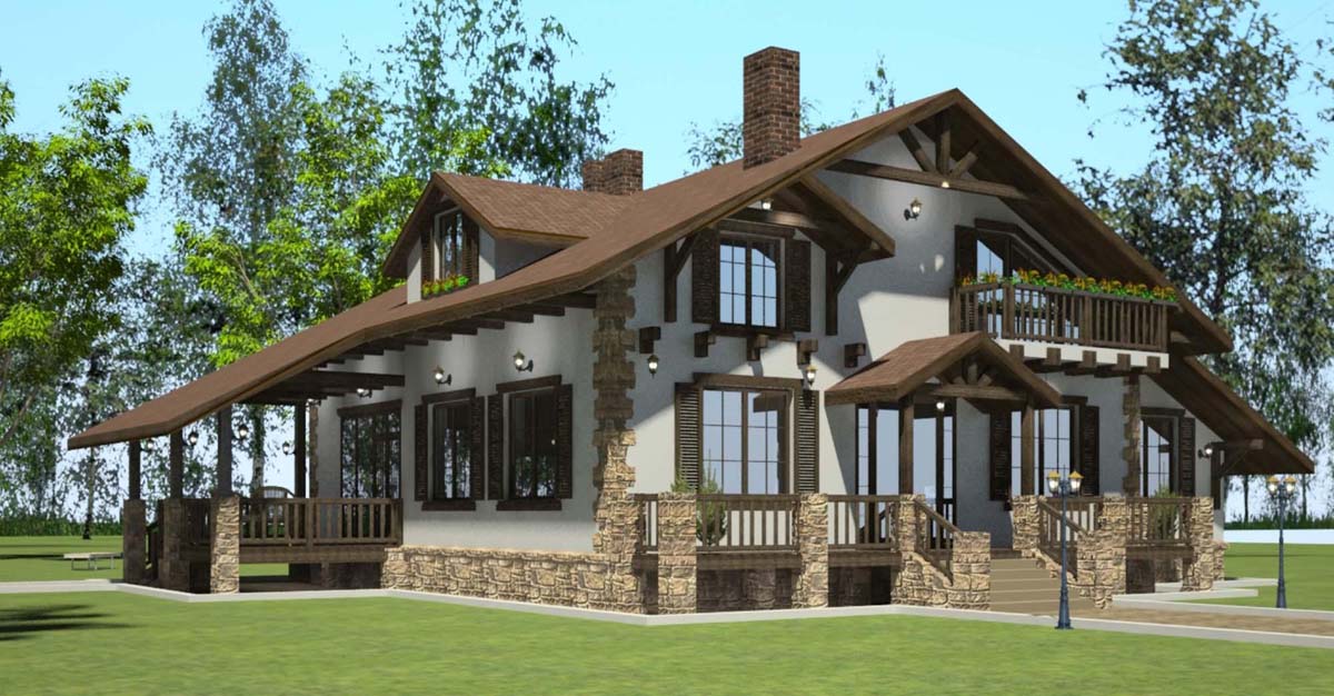 Pour une maison privée, ce style de façade en musique country est parfait. Il peut être complété par d'autres styles. Par exemple, à colombage ou européen. Cela aidera à rendre votre maison élégante et individuelle.