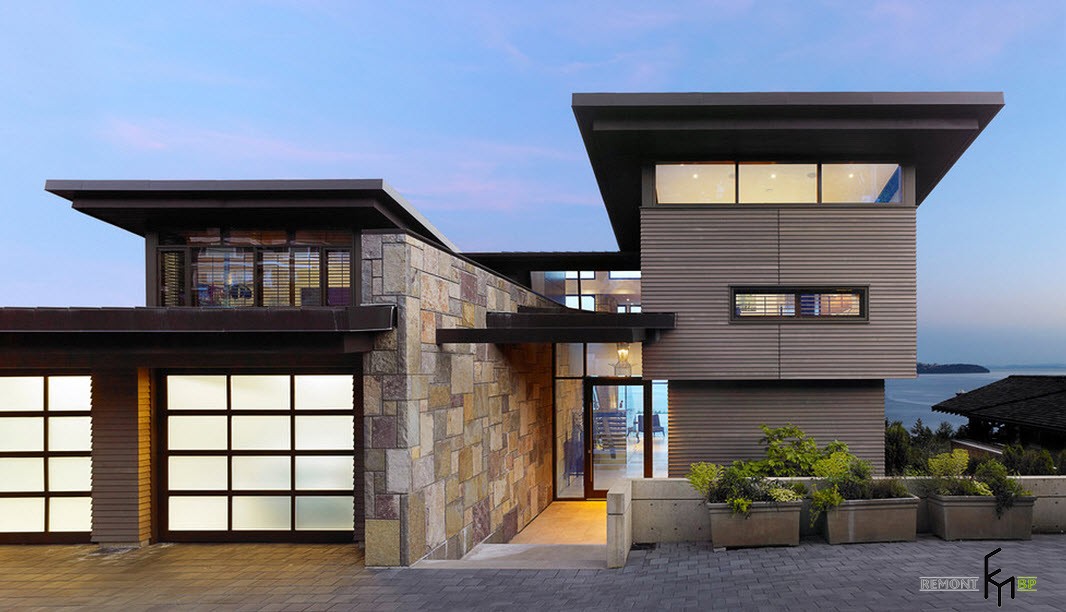 Les concepteurs modernes proposent d'appliquer ce style de façade d'une maison privée, au minimalisme. Dans ce style, vous pouvez rencontrer des lignes géométriques strictes et un minimum d'éléments décoratifs. Si vous n'aimez pas les façades surchargées, le minimalisme vous ira parfaitement.