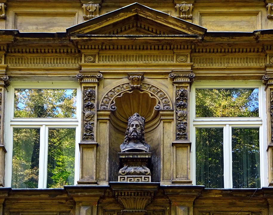 - Ouverture des fenêtres et des portes Le premier à rencontrer les yeux du visiteur, et leur cadrage doit être bien pensé. Au-dessus de la fenêtre se trouve sandrik, c’est-à-dire une petite corniche, de forme droite, triangulaire ou de luchkovoy. Les pentes et les appuis de fenêtres sont entourés de stuc ou de moulures.