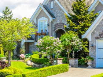 La maison est toujours séparée du garage et des autres extensions. Toutes les installations sont prises pour avoir dans la cour au milieu du site pour se cacher des regards indiscrets. Les maisons ont souvent une petite terrasse, une pelouse avec un jardin de fleurs et des arbustes également caché des regards indiscrets.