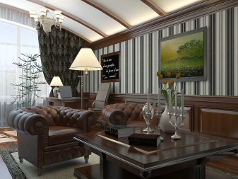 Cependant, pour les intérieurs de style anglais, tous les papiers peints ne conviennent pas. La préférence devrait être donnée aux motifs verticaux et aux formes géométriques claires, ainsi qu'aux motifs floraux.