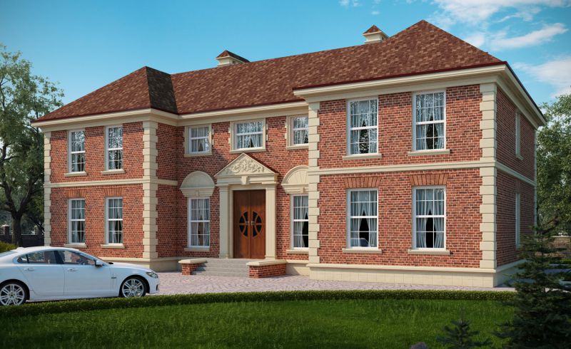 La maison finie dans le style anglais semble massive et stricte. La façade se distingue par l'utilisation de matériaux naturels. En règle générale, un tel bâtiment peut être décrit comme un bâtiment en pierre à la façade large qui, toutefois, attire l’attention avec clarté des lignes et précision. En règle générale la maison est en plâtre et faite de briques rouges avec de la maçonnerie classique. Le revêtement, le plâtre léger et les décorations de façade ne sont pas considérés comme un style britannique traditionnel.