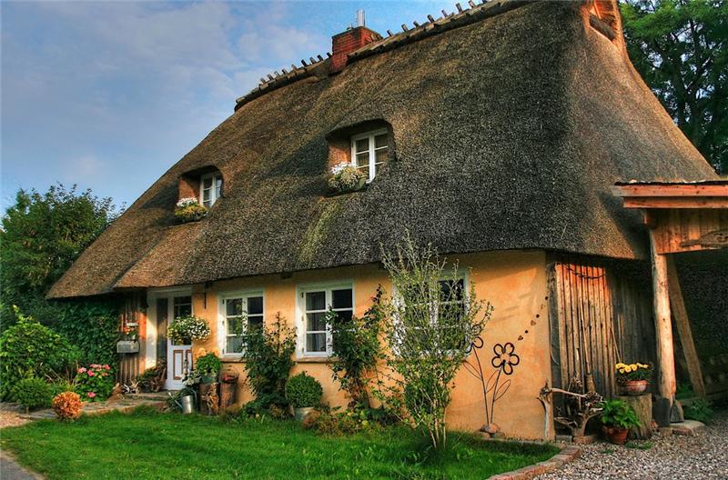 L'ardoise et la paille sont également des matériaux populaires pour le toit d'une maison de campagne.De telles maisons ont leur propre style spécial et unique.