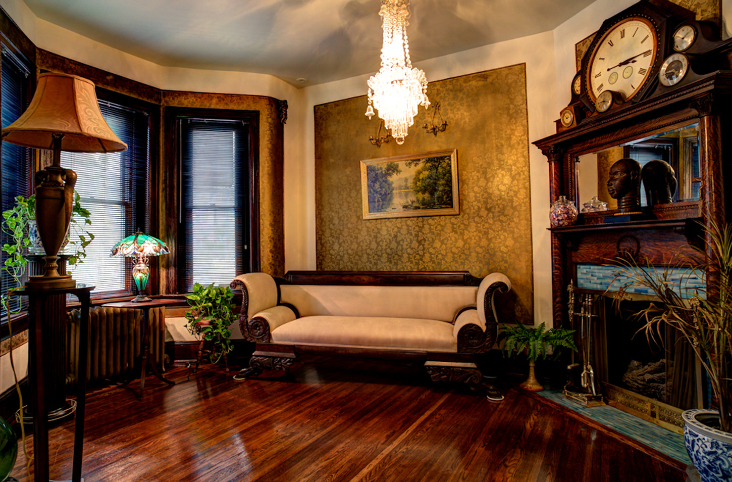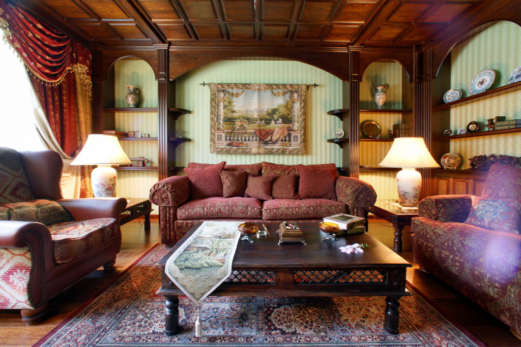 Si la maison est construite en rondins, la décoration intérieure masque les structures en arbre des cloisons sèches. Les murs, les miroirs et les photographies dans de grands cadres dorés peuvent donner un aspect fini à la conception des murs.