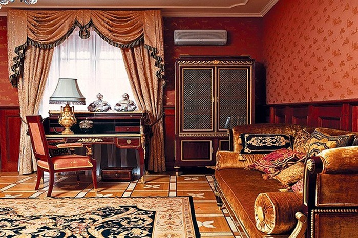 Le choix de l'intérieur est un travail très important et laborieux. L'intérieur anglais est considéré comme l'un des plus difficiles parmi les tendances stylistiques. Il est souvent assimilé au style classique et associé à quelque chose de majestueux. La palette principale dans la finition - toutes les nuances de rouge: bordeaux terne, riche et rouge foncé. Ainsi que gris, blanc et olive.