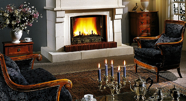 La principale caractéristique de toute maison anglaise est la présence de cette cheminée. Par temps humide et humide, il ne remplit pas uniquement une fonction esthétique. Le revêtement est en pierre, en bois, en marbre avec une clôture en fer forgé. Sur la cheminée, des horloges, de hautes bougies, des sculptures en porcelaine et des fleurs. Il est conseillé d'utiliser des antiquités.