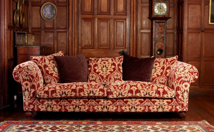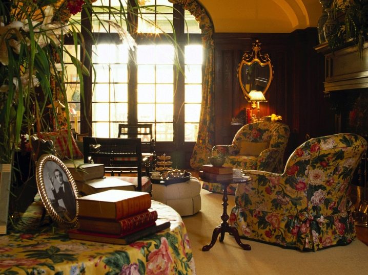 À l'intérieur anglais, beaucoup de textiles sont utilisés: rideaux, rideaux, nappes, oreillers, rideaux.