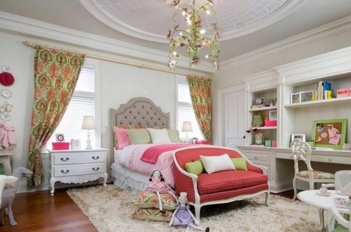 Le plafond dans toute la maison est blanc. Pour créer l’effet d’une maison familiale centenaire, vous pouvez utiliser des poutres en bois au plafond, imitant les sols anciens. Comme décoration peut être utilisé en stuc.
