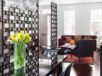 - Verre. Le type de brique considéré - à la fois transparent et opaque - est capable de remplir de lumière toute pièce.Il convient également de noter la variété de nuances de ce matériau, grâce à laquelle il peut être utilisé avec succès non seulement pour la décoration de salles, mais également pour leur zonage.