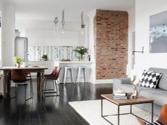 Le principe de base de l'utilisation de briques à l'intérieur est très prosaïque. Les experts notent que ce matériau introduit un maximum de beauté et de confort à l'intérieur que dans les cas suivants quand il est appliqué en quantités raisonnables. Ignorer cette recommandation rend la pièce trop froide et la prive du confort souhaité.