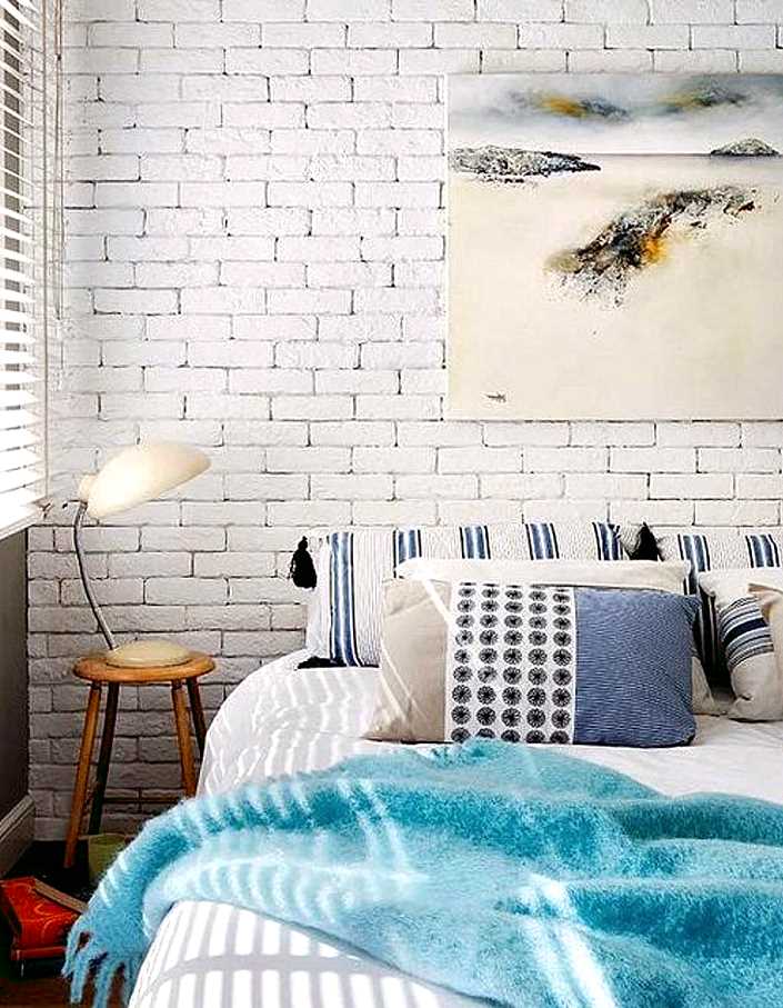 - La chambre Pour la conception de cette salle est la mieux adaptée brique blanche, surtout si elle est réalisée dans le style scandinave. En option, un tel matériau peut décorer la voûte en remplaçant la porte de la chambre.