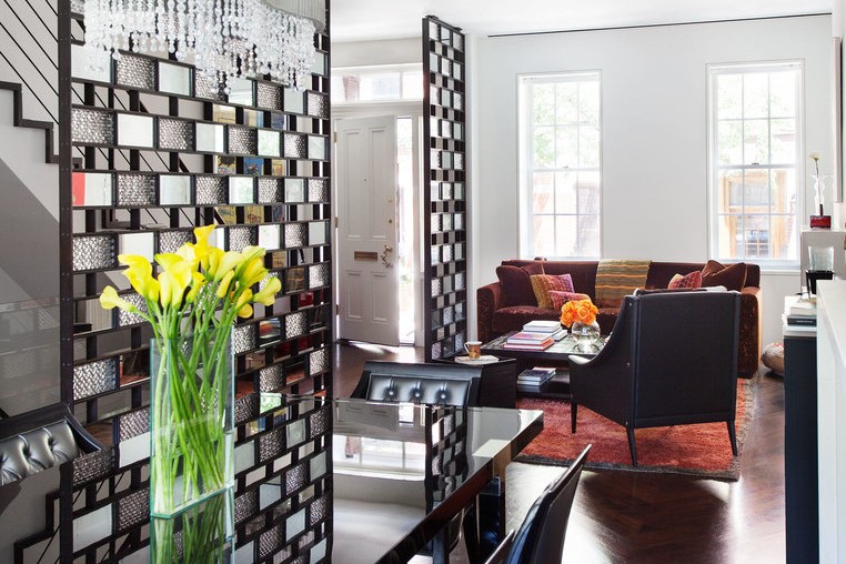 - Salle de séjour. Un mur décoré avec le matériau décrit peut constituer un excellent fond pour d'autres éléments intérieurs. Pas moins impressionnant aura l'air cheminée, bordée de briques de plâtre décoratives. Il convient de mentionner les cloisons faites d’une variété de verre du matériau en question.
