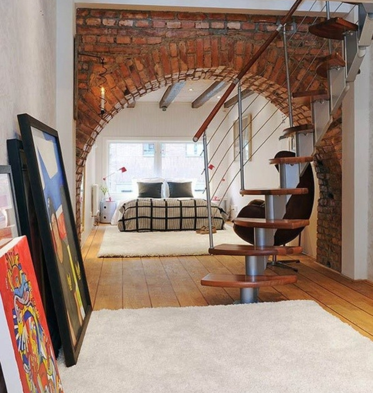 - Grenier Pour les chambres décorées dans ce style, le type de décoration est un élément clé. Cela est dû au fait que dans les lofts intérieurs, il y avait à l'origine des murs de briques. En même temps, l'intérieur moderne, décoré dans ce style, permet d'imiter la vraie maçonnerie.
