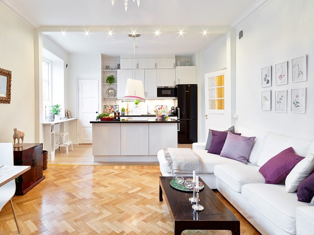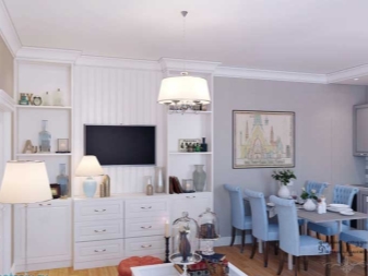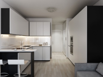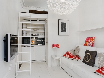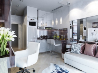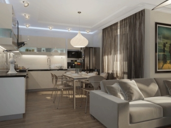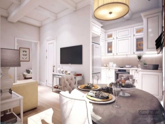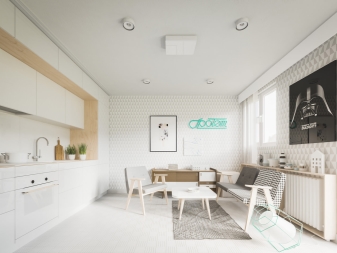 - La cuisine, le salon et la salle à manger dans les petites pièces comprennent le plus souvent une zone de loisirs.