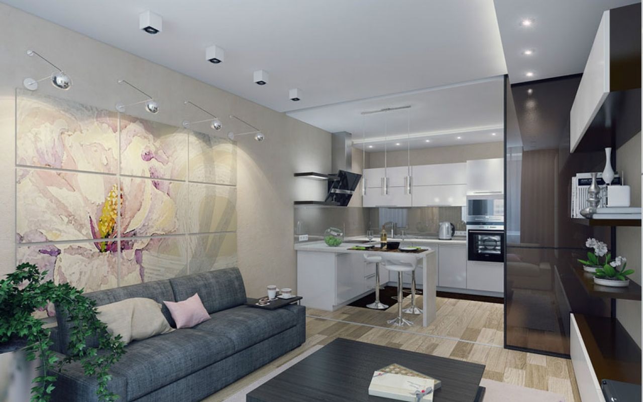 Pour les petites pièces et salons combinés avec chambres et cuisines, les styles modernes suivants conviennent: