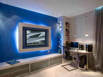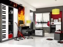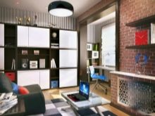Dans la zone de travail, il est habituel de voir un bureau avec l'équipement approprié, une chaise, des bibliothèques et des étagères. Le coin personnel peut être transféré ici, surtout si le jeune homme est sérieusement intéressé par quelque chose: la musique, le sport, la peinture ou la collection. Pour chacun des loisirs, choisissez les attributs nécessaires. Il convient également d'écouter quelques conseils: