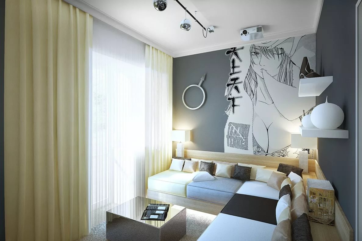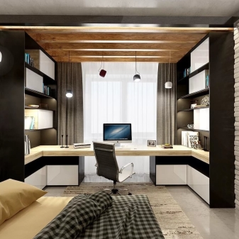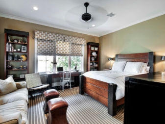 En fonction de la taille de la salle, il est déterminé qu'il y aura autant de zones avec leurs fonctions spécifiques. Les principaux sont des endroits où dormir et travailler, mais ils peuvent aussi être multifonctionnels, servant simultanément ou à d’autres fins.La chambre à coucher n'implique pas nécessairement la présence du lit. À sa place peut être un coin de canapé ou de type pliant. Ensuite, cette zone est également appropriée pour recevoir des invités ou des activités de loisirs.
