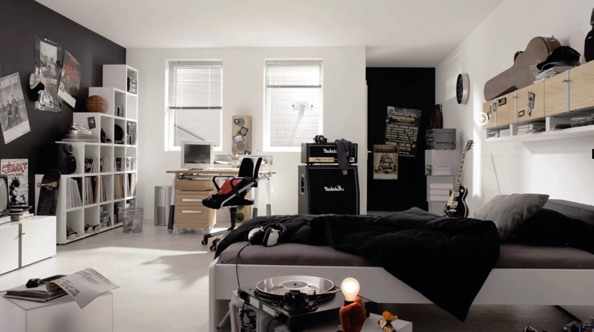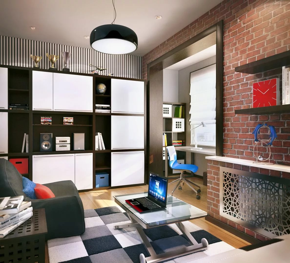 Salle de décoration pour un jeune homme de 20 à 23 ans d’une superficie de 12 mètres carrés. m implique la sélection de certains éléments: palette de couleurs, objets de décoration et meubles. En les choisissant, vous devez vous concentrer sur les souhaits du propriétaire des lieux, qui, très probablement, seront réduits à la simplicité, à la commodité et au style. Les teintes prédominantes peuvent également être facilement déterminées: non-coloration appropriée. Cependant, la planification générale doit être surveillée en prenant bien en compte chaque aspect.