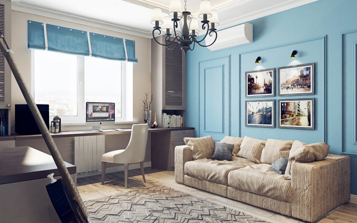 Ici, tout est rempli d'une merveilleuse atmosphère de chaudes journées d'été au bord de la mer, l'espace environnant semble aéré. Pour ce faire, procurez-vous des meubles et des objets de décoration de la même couleur, soulignant ainsi la légèreté exagérée. Une telle fondation crée un sentiment de fuite. Cette option conviendra à la nature du romantique qui rêve de voyager beaucoup et de voir tous les coins de la planète.