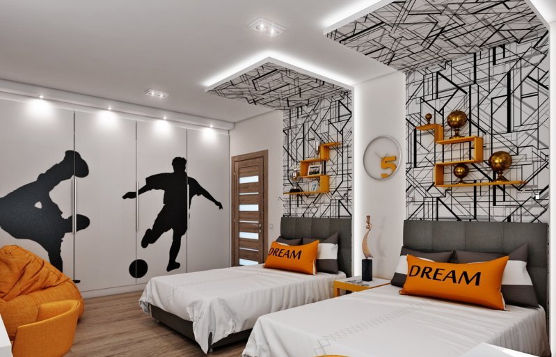 Créer une bonne chambre pour deux personnes différentes à la fois est une tâche extrêmement difficile, surtout si leurs intérêts et leurs aspirations diffèrent grandement. Les deux jeunes hommes devraient être également à l'aise et douillets dans leur chambre à coucher. Même dans une situation aussi difficile, le moyen de s'en sortir est essentiel: il est nécessaire d'identifier les principales préférences des jeunes lors d'une conversation avec eux.