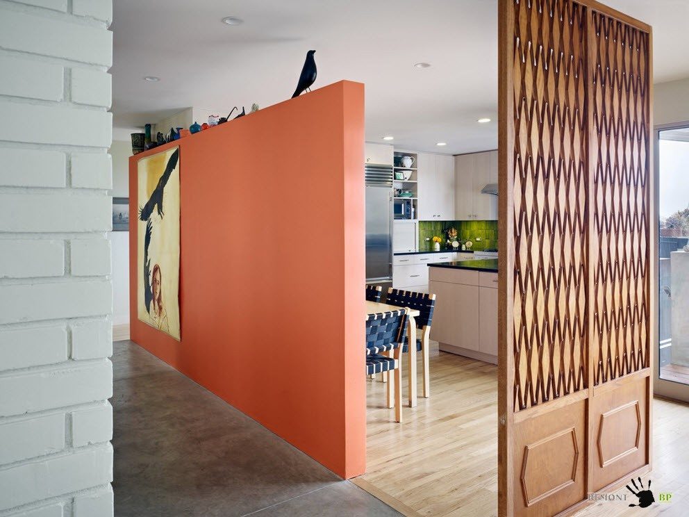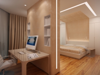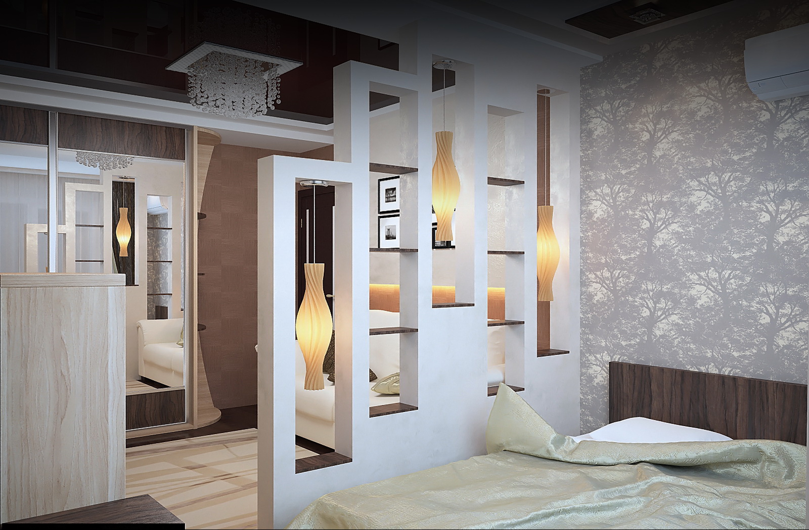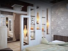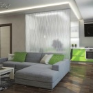 - À l'aide de cloisons bien choisies, il est très avantageux de diviser une pièce en plusieurs pièces différentes, mais à la fois complètes. Et vous n'avez pas besoin de réaménagement professionnel avec le changement et même la démolition des murs.