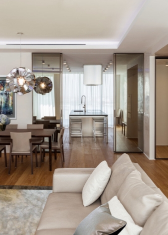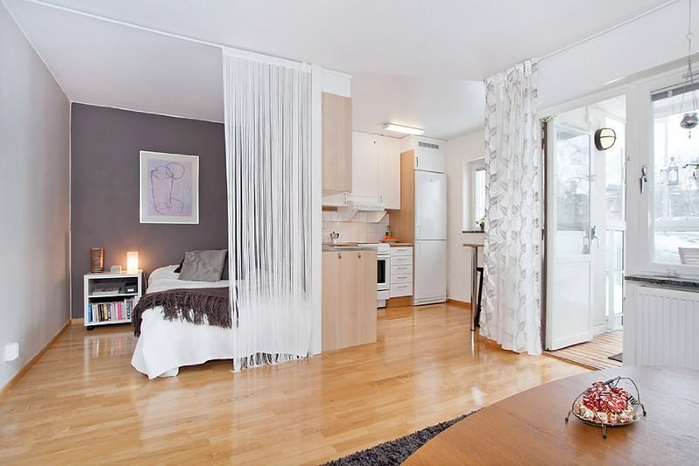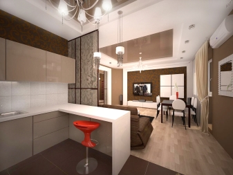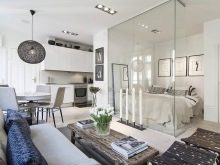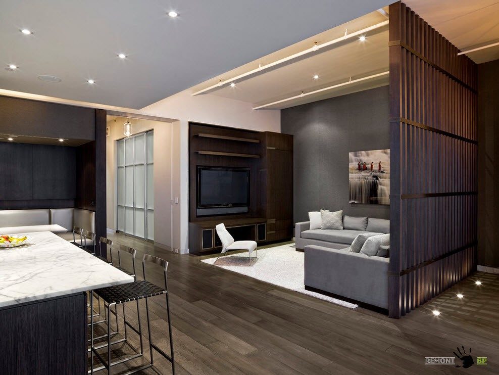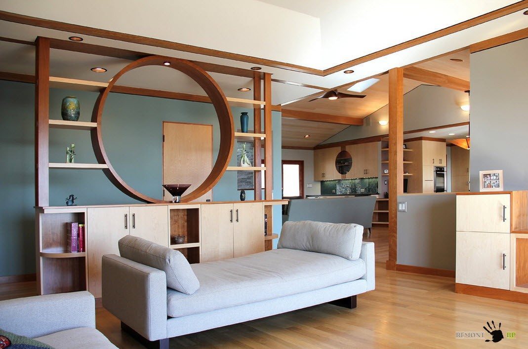 En présence d'une grande pièce dans une maison ou un appartement, de nombreux résidents décident de son zonage, de sorte que la pièce devienne encore plus fonctionnelle et divisée. Il n’est pas rare qu’un studio partage une pièce commune avec une cuisine, un coin repas et un espace de détente.