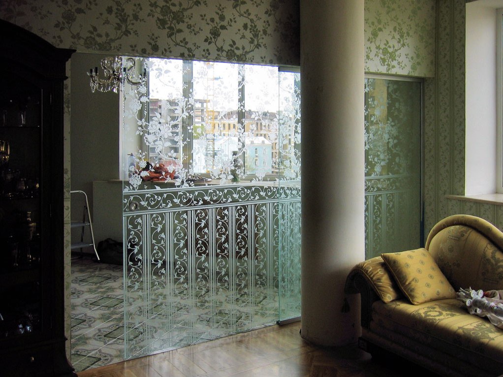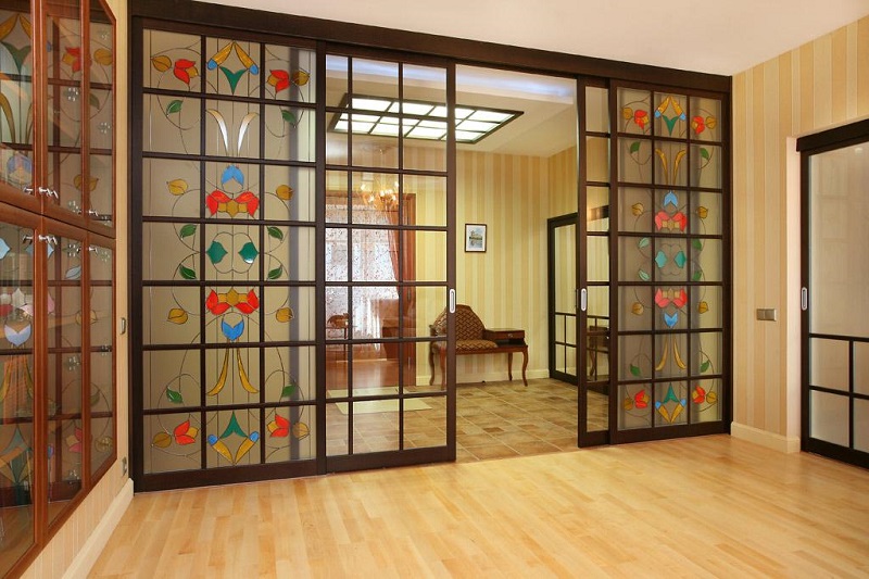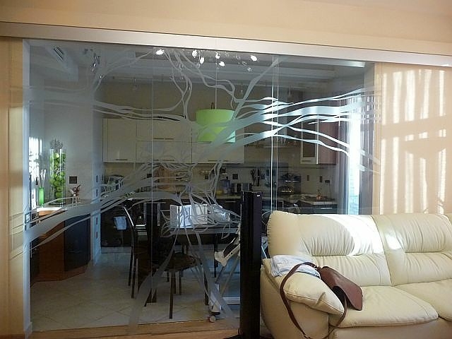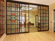 - Les cloisons en verre transparent étant considérées comme l’une des plus populaires, on peut souvent les trouver avec diverses gravures et peintures sur verre. De plus, les matériaux translucides peuvent parfois sembler ennuyeux, c'est pourquoi ils peuvent être décorés avec du vitrail.