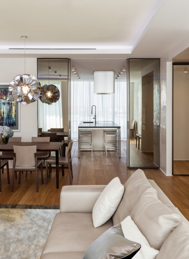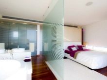 - Tout modèle a l'air élégant en plexiglas ordinaire, avec leur aide, vous pouvez non seulement diviser visuellement la pièce, mais aussi souligner l’intérieur. Les cloisons transparentes ont toujours l'air claires, en les choisissant, vous pouvez rendre n'importe quel intérieur moderne d'une maison ou d'un appartement irrésistible.