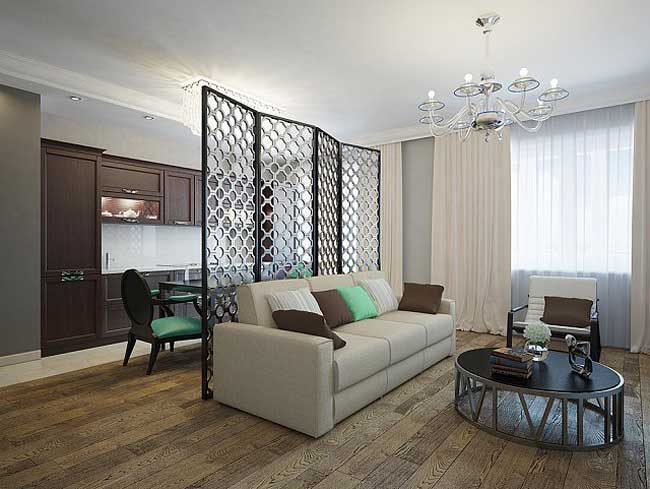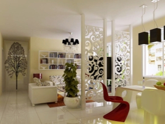 - Dans le salon. Dans cette salle, il est possible d'utiliser une variété de partitions qui conviendront bien à la conception de la salle.