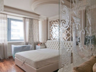 - Essayez de ne pas acquérir des structures très fragiles et lâches avec du verre s'il y a des enfants dans la maison. Si vous souhaitez ajouter à la pièce de confort, faites attention aux cloisons en textile léger, ce qui peut être une excellente solution pour une chambre à coucher.
