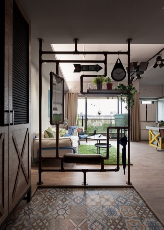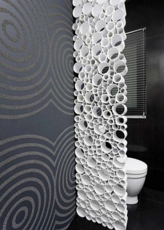 En outre, parmi les options de conception les plus variées, vous pouvez également trouver des modèles inhabituels, par exemple des cloisons en tuyaux, qui sont souvent réalisées par les résidents de leurs propres mains. De telles solutions semblent avoir été travaillées par le designer le plus professionnel.