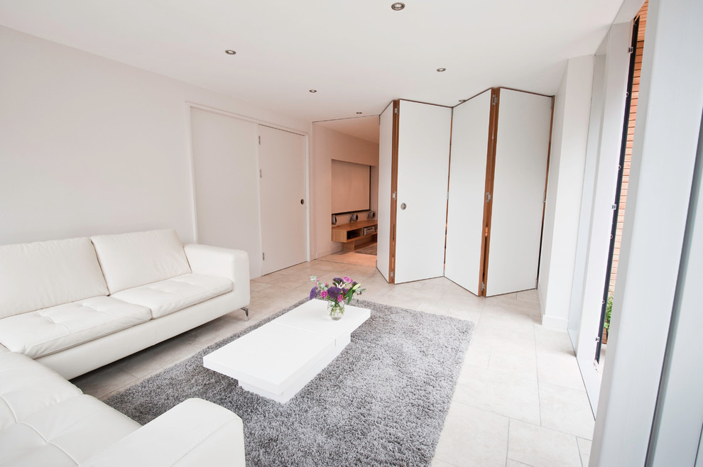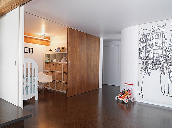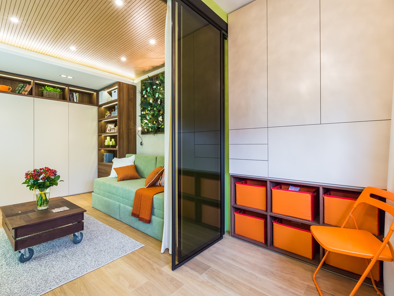 - Options rétractables et coulissantes Les cloisons sont très populaires parmi les concepteurs qui, avec leur aide, séparent les zones de travail fonctionnelles et créent des armoires entières dans une seule pièce.