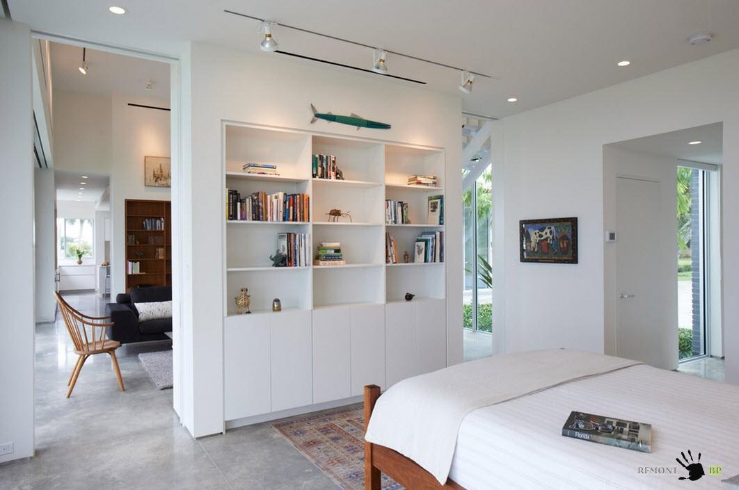 - Il n'est pas recommandé de zoner complètement à l'aide de grands placards. Dans ce cas, il est préférable de choisir des étagères surdimensionnées.