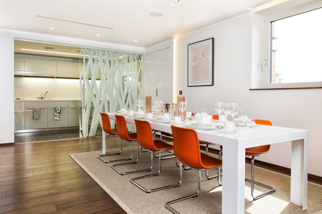 - Si vous souhaitez afficher la séparation maximale de deux zones complètement différentes, n'oubliez pas de zoner également la couleur. Par exemple, vous pouvez séparer la cuisine de la salle à manger à l'aide d'un écran, de différentes couleurs de papier peint et de sols.