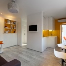 - Découvrez le studio. Le résultat final sera beaucoup d’espace, des espaces de rangement pour les vêtements, des toilettes séparées, une salle à manger et un coin cuisine. Si le studio est petit, il est recommandé, dans sa planification, de ne créer qu'une seule cloison, qui séparera la salle de bain. Dans la cuisine, vous pouvez installer un comptoir en forme de U et le combiner avec des murs et des appuis de fenêtre. Dans la conception de l'invité, il est bon d'appliquer une table basse, un petit canapé, une télévision et des étagères pour les livres.