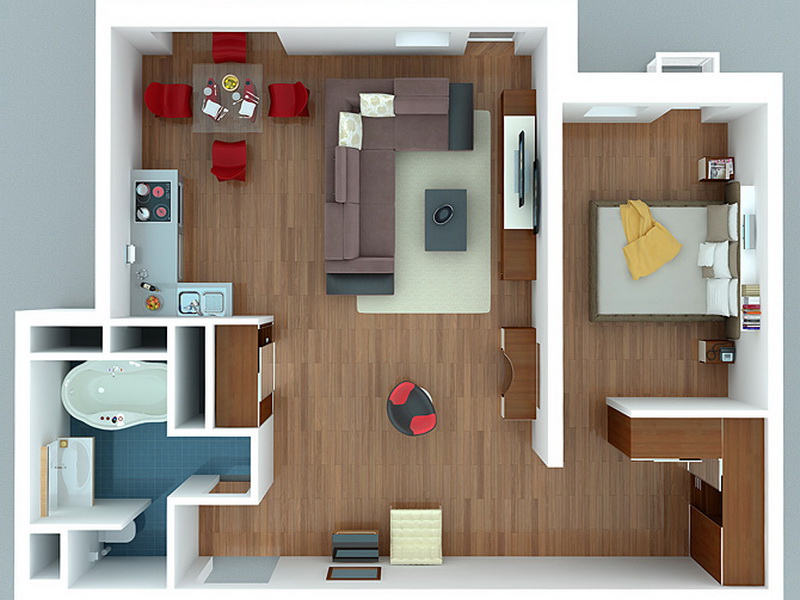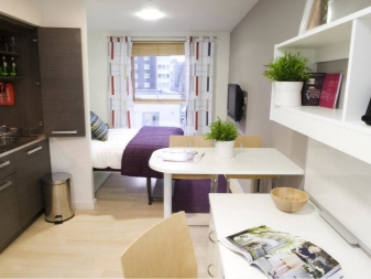Il n’est pas recommandé d’utiliser des meubles massifs dans le studio, car ce type de logement est caractérisé par la liberté d’espace.