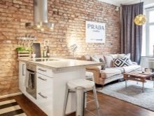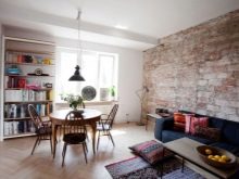 Les habitants de petits appartements trouvent souvent un substitut aux matériaux naturels sous forme d'imitation de bois, de pierre ou de brique. Cela économise de l'espace et un budget familial.