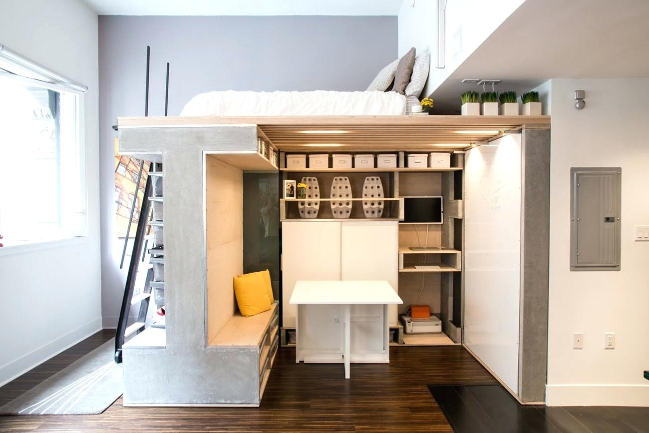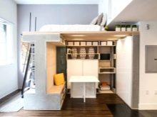 - les meubles doivent être fonctionnels: le canapé se transforme en lit. Sous le lit se trouvent des rangements rétractables, une table de cuisine est extensible, une chambre d’enfant est une couchette (le lieu de travail est en bas, la chambre à l’étage);
